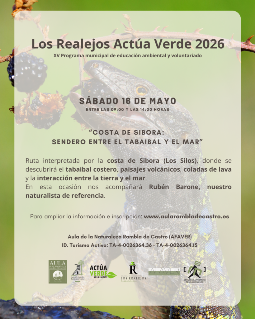 Sábado 16 de mayo de 2026 | Ruta lineal -ida y vuelta- interpretada por la costa de Sibora (Los Silos), donde se descubrirá el tabaibal costero, paisajes volcánicos, coladas de lava y la interacción entre la tierra y el mar. En esta ocasión nos acompañará Rubén Barone, nuestro naturalista de referencia.